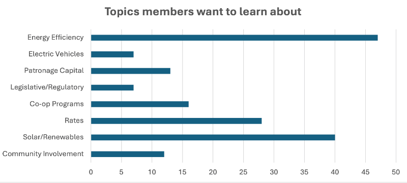 We want your bright ideasWe want to know what you’d like to learn more about at your local electric cooperative. Please take this short survey to let us know what interests you the most and share your bright ideas! Be sure to visit this page often to view survey results and information about topics our members request to hear more about.